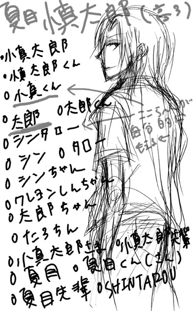 なんか学校の自己紹介のときに、「夏目です。」って、言って、先生に「下の名前は?」って言われて、ああ言いたくねえなーって、「慎太郎です」渋々答える夏目先輩とか想像するともゆる(どんなだ)