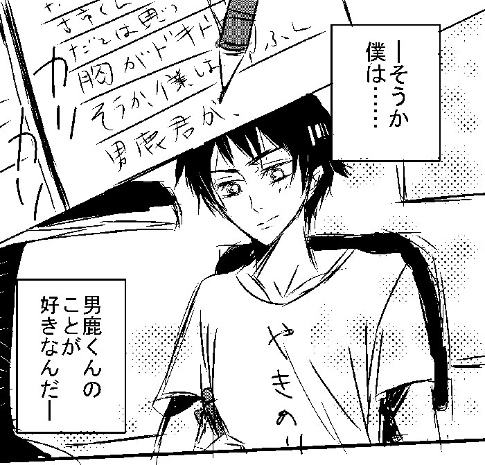 上のはきっとあのケンカ後の三木で。そのときに、ああ僕はきっと憧れじゃなくて、男鹿くんのことが好きなんだと気づく中学生三木。あと彼は男鹿に憧れてるので、男鹿を真似して、文字Tをこっそり家で着てるんだという(^p^)わたしの中の三木は、思いこみ激しくて痛いけ可愛い子になってます。